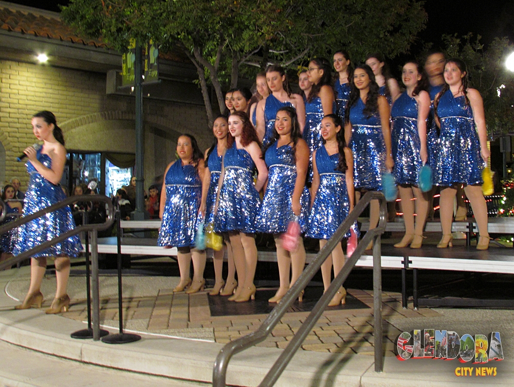 All three Glendora High School choirs performed Friday evening, the Illumination (intermediate girls choir), the Silhouettes (advanced girls choir and the Royal Stewarts, singing many Holiday-themed selections and pop music.