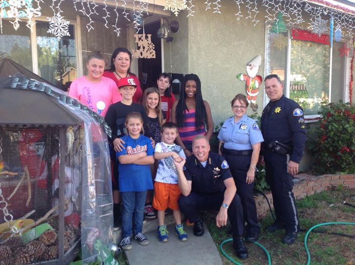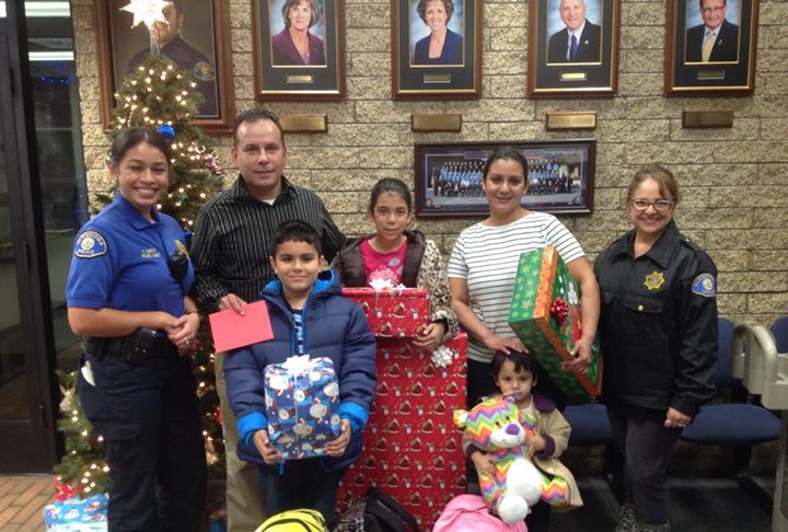 - From left to right, Glendora Police Cadet Christine Garcia, the Gonzalez family and and Community Services Officer Nita Ulloa-Pedroni.