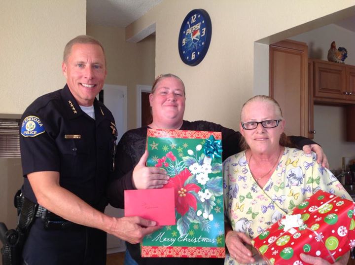 - Glendora Police Chief Tim Staab helps deliver donated gifts to the Robinson family.