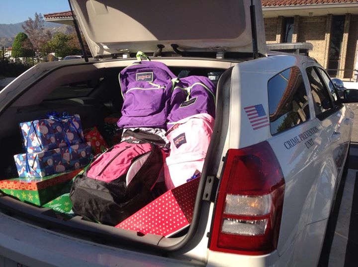 Glendora officers, cadets, auxiliary officers and even Police Chief Tim Staab helped deliver gifts to underprivileged families. Gifts were donated by area organizations, including the Mar Thoma Church of Los Angeles (located in Glendora), Glendora Empty Bowls, Khol’s, Sit ‘n Sleep and the Glendora Police Officers Association.
