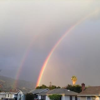 After a day of intense rainfall, punctuated with a brief hailstorm, a mist in the air and a bright sun gave birth to intense rainbows in Glendora Monday afternoon.