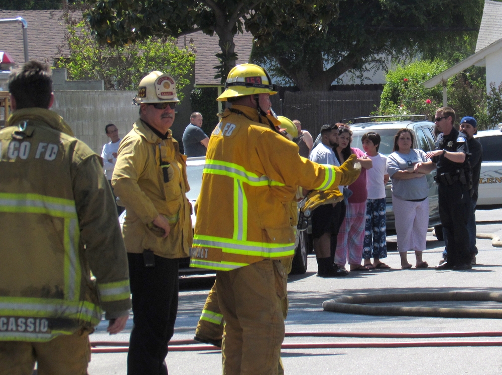 Two adults and three children have been displaced and no injuries were reported. However, a family dog was killed in the fire, which was reported around 11:25 a.m. in the 1700 block of South Bender Avenue. Fire fighters arrived four minutes later, said Battalion Chief Bob Haskell of the Los Angeles County Fire Department.