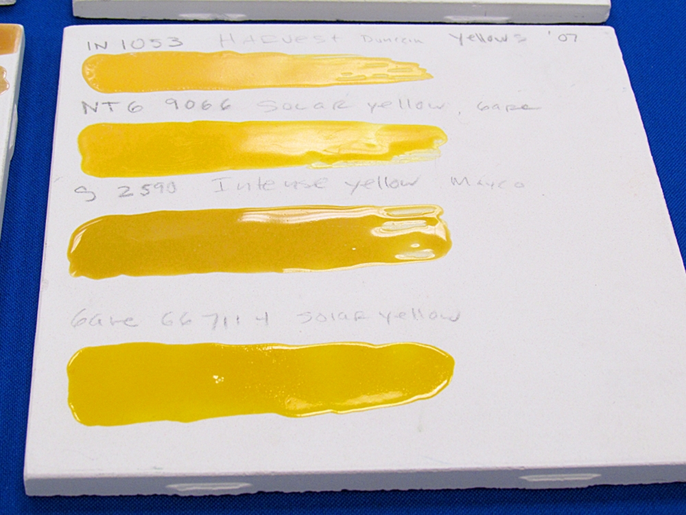 - Variations of yellow hues for cermaic glazes were displayed. Photo by Aaron Castrejon.