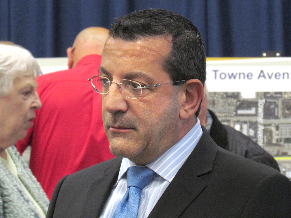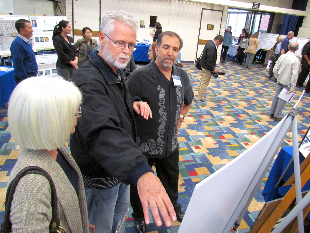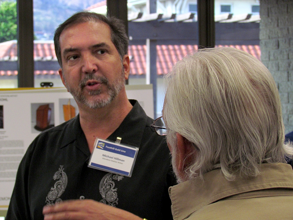 - Habib Balian, CEO of the Foothill Gold Line Construction Authority, speaks with some residents at the Open House in the Bidwell Forum. Photo by Aaron Castrejon.