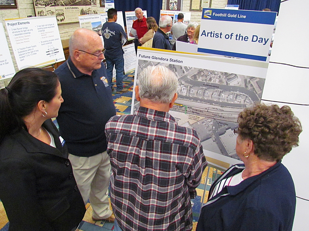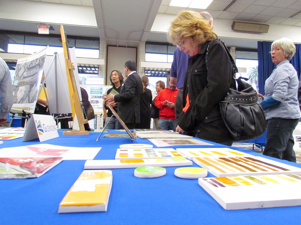 - Interested residents observed artwork for some of the six stations planned for the Gold Line Foothill Extension from Azus to Montclair. Photo by Aaron Castrejon.