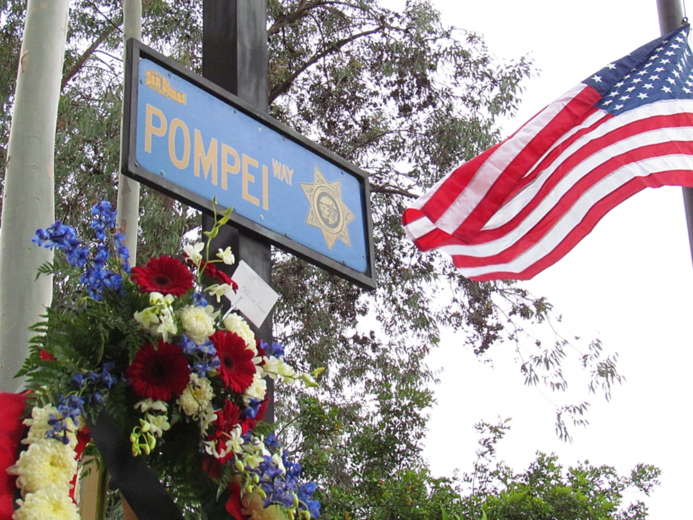 Pompei was posthumously awarded the Glendora Police Department’s Medal of Valor, the highest honor bestowed on an officer. Pompei’s brother Chester, sister Dorothy Ann and niece Andrea Pompei-Ramirez were supposed to be present to accept the award. However, Pompei’s brother Carlo died suddenly the evening of June 7, Davis said.